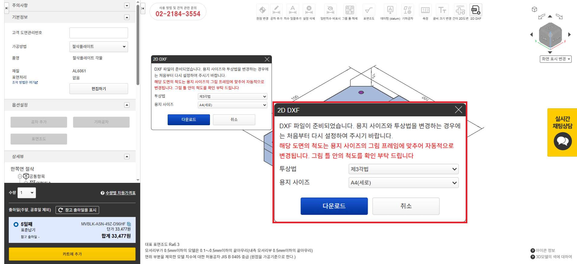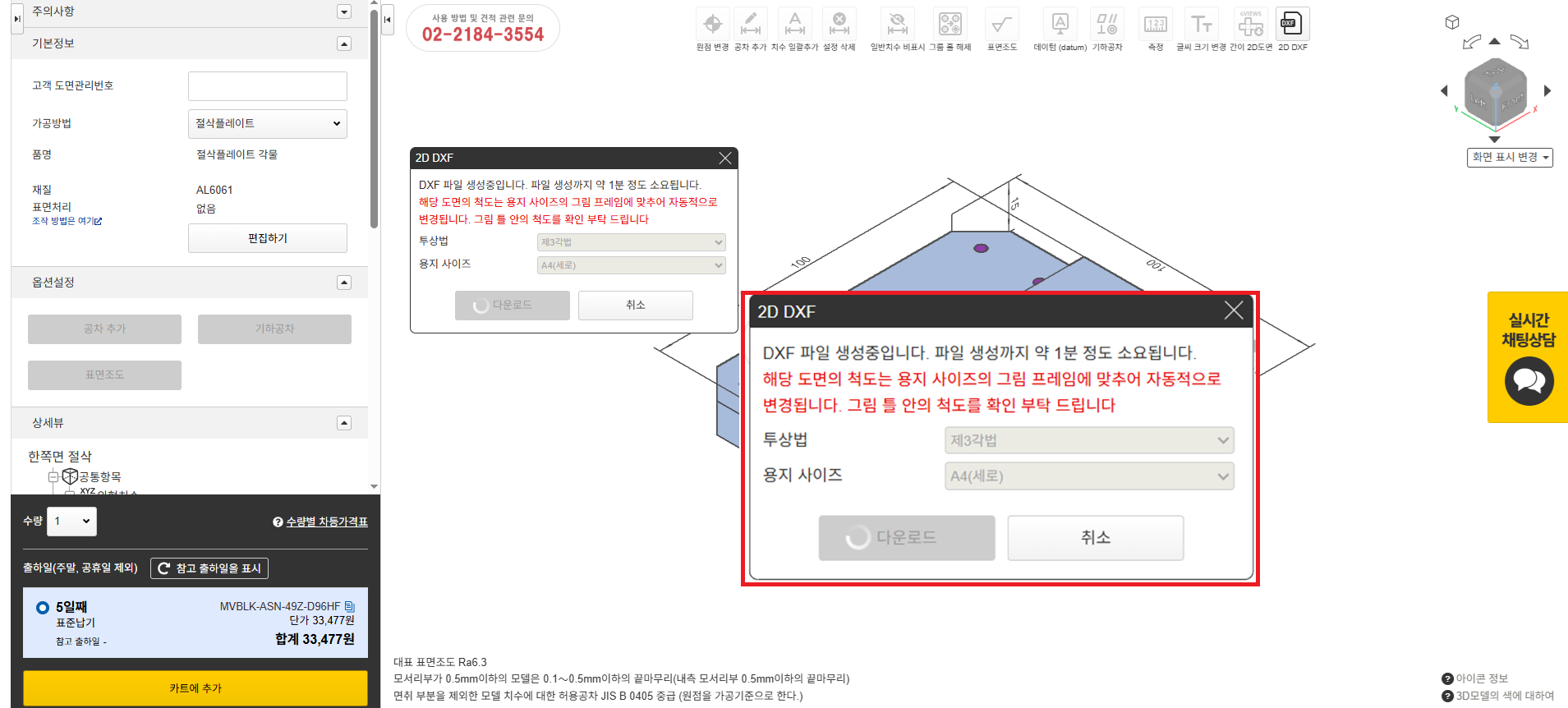 2D DXF 파일 생성 완료까지 잠시 기다려 주시기 바랍니다.