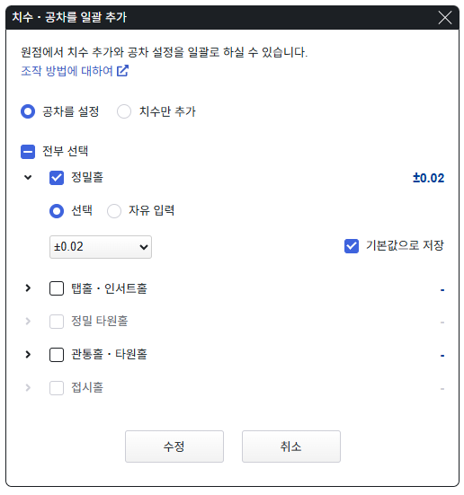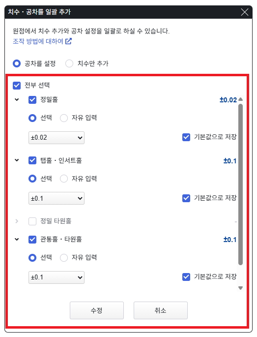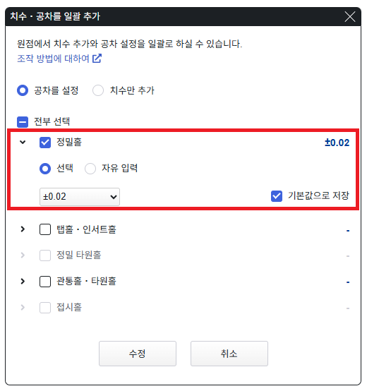 2-2. 드롭다운으로 제공되는 공차 수치 이외로 설정을 원하실 경우