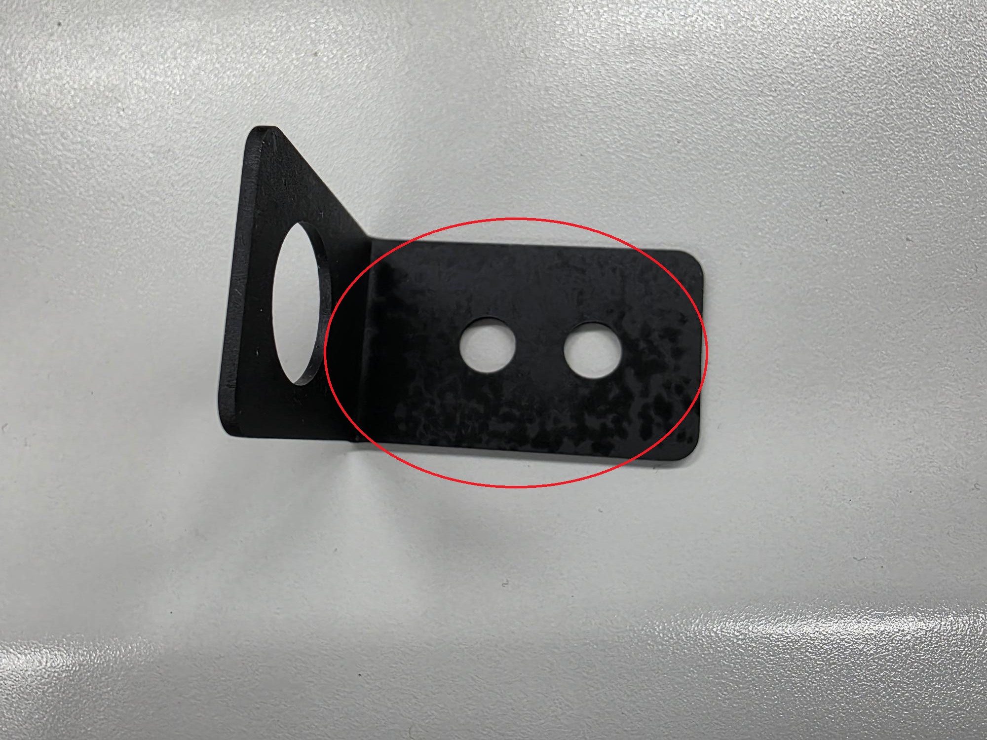 흑착색 표면처리의 경우, 공정 특성상 소재 상태, 열처리 이력, 표면 거칠기, 형상 등에 따라 색감이 균일하지 않게 나타나거나 얼룩처럼 보이는 현상이 발생할 수 있습니다.