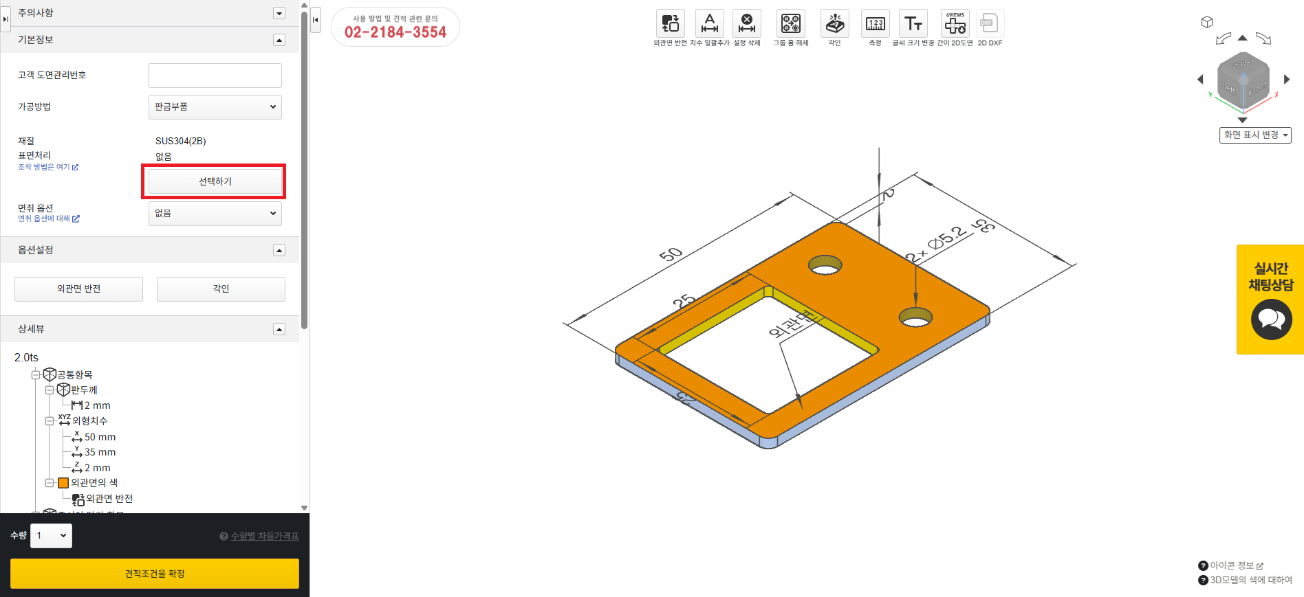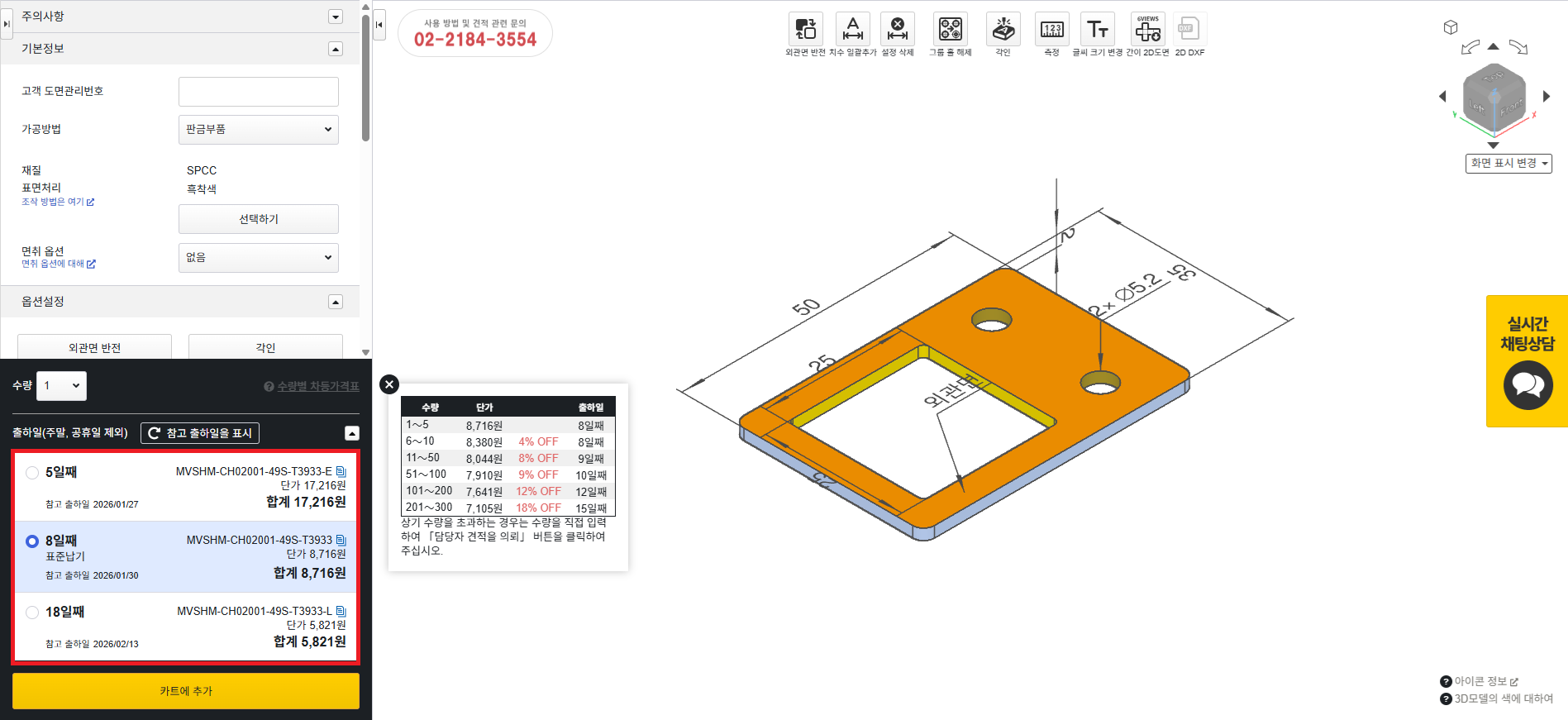 ⑧ 자동견적으로 나오는 가격과 납기 확인