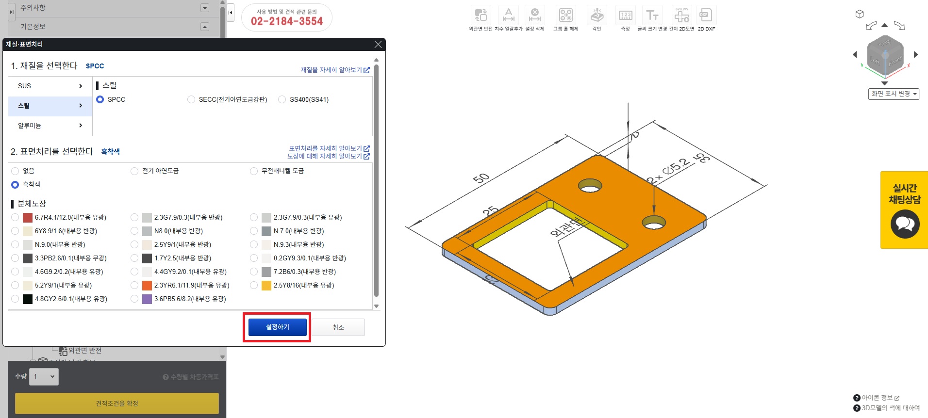 ③ 재질 표면처리 선택을 위하여 「선택하기」를 클릭