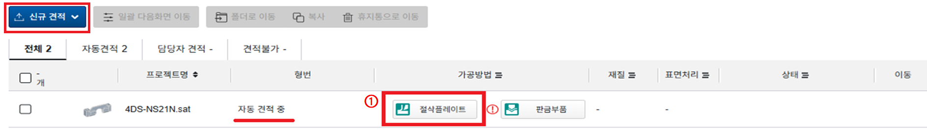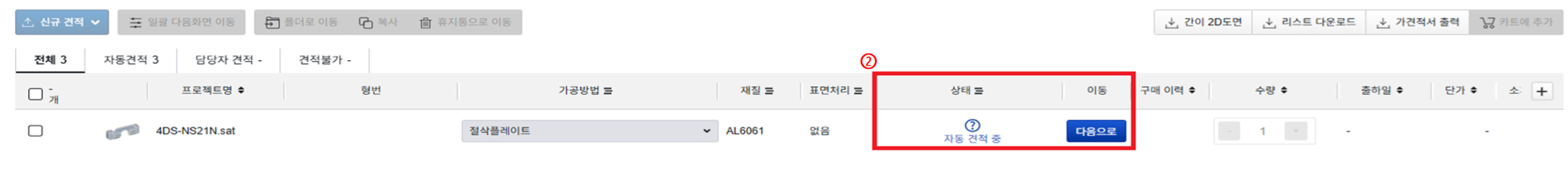 견적 상태가 ②와 같이「자동 견적 중」으로 표시된다면, 시스템에서 정상적으로 분석을 진행 중인 상태이므로 별도의 문제는 없습니다.